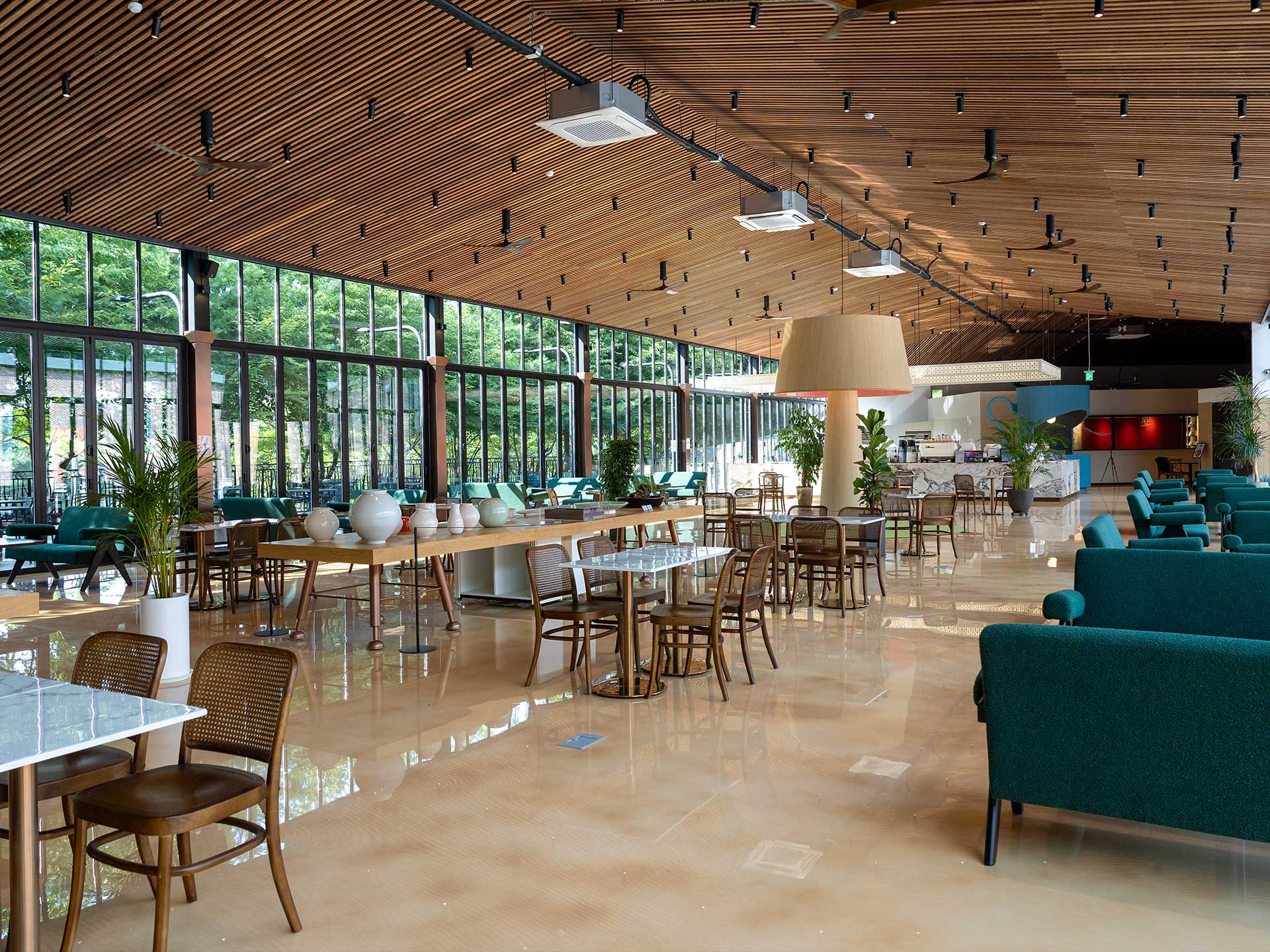 넓고 쾌적한 대형 공간 카페와 레스토랑에서 다양한 음료를 마시거나 간단히 식사도 할 수 있습니다.