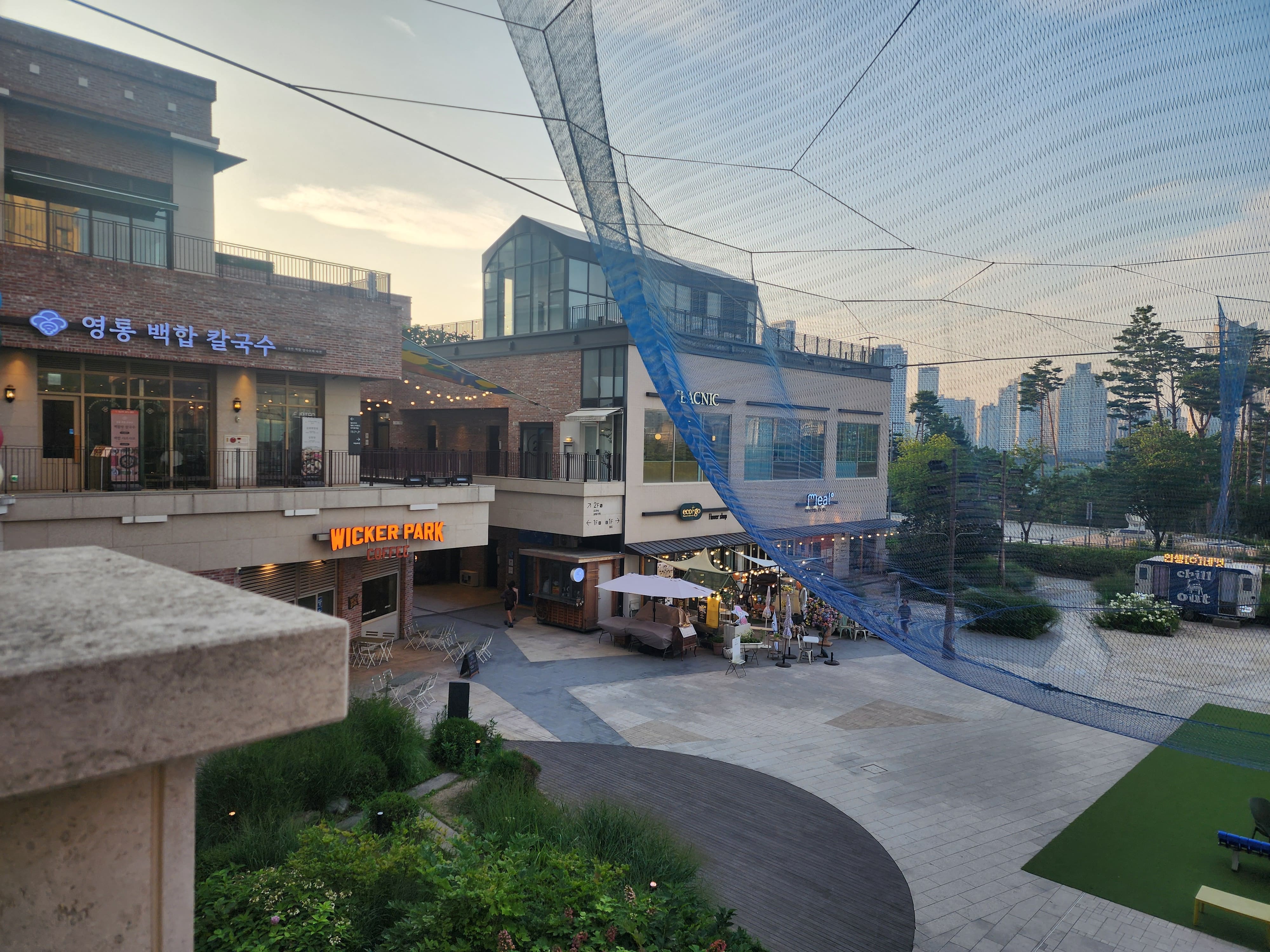 수변산책로와 바로 이어지는 하부 상가, 다양한 브랜드의 맥주집과 카페가 줄지어 있어서 야외 좌석에서 광교호수공원의 운치를 제대로 느낄 수 있습니다.