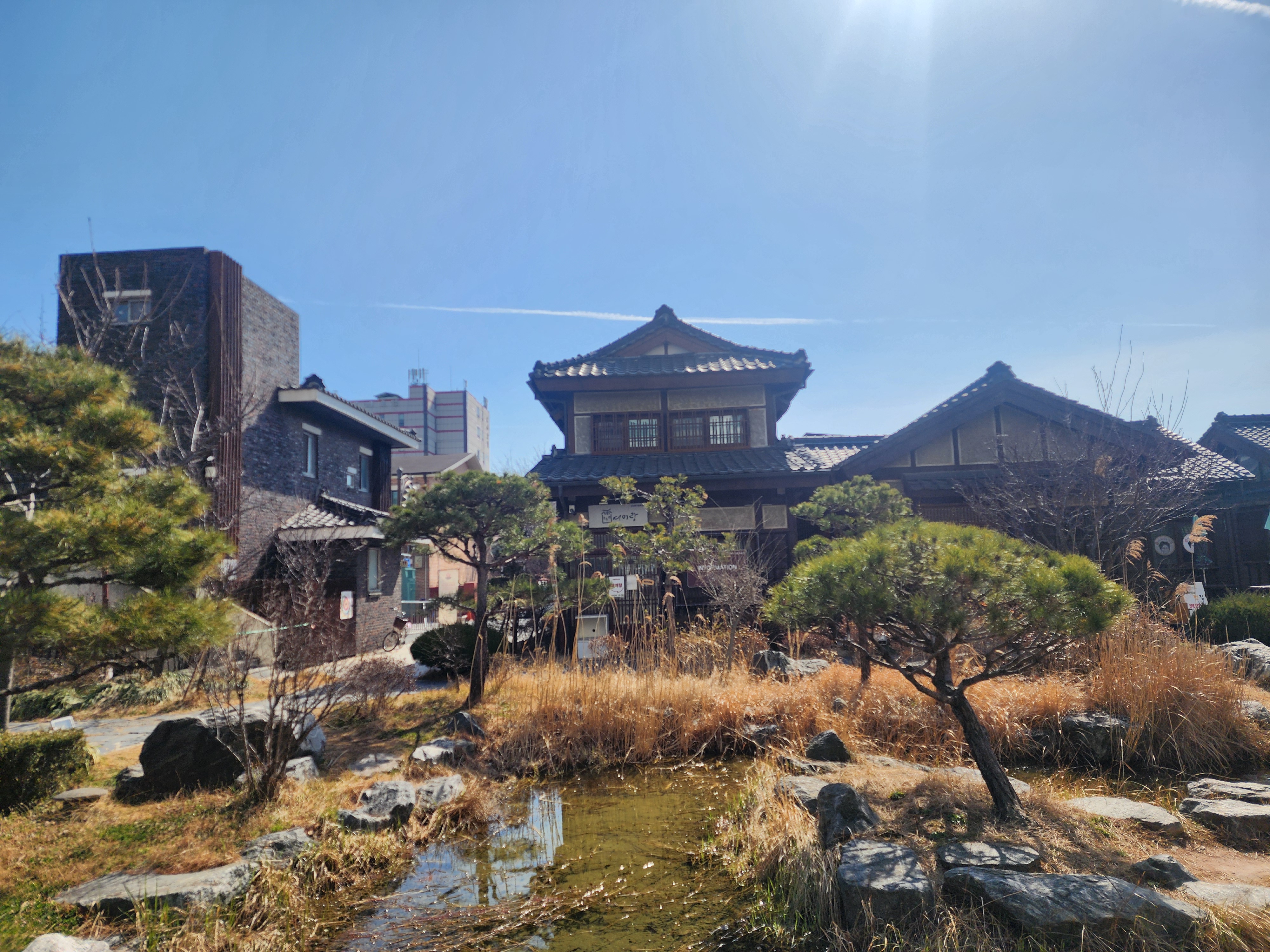 전통 정원과 목조 건물이 어우러져 이국적인 분위기를 느낄 수 있습니다.