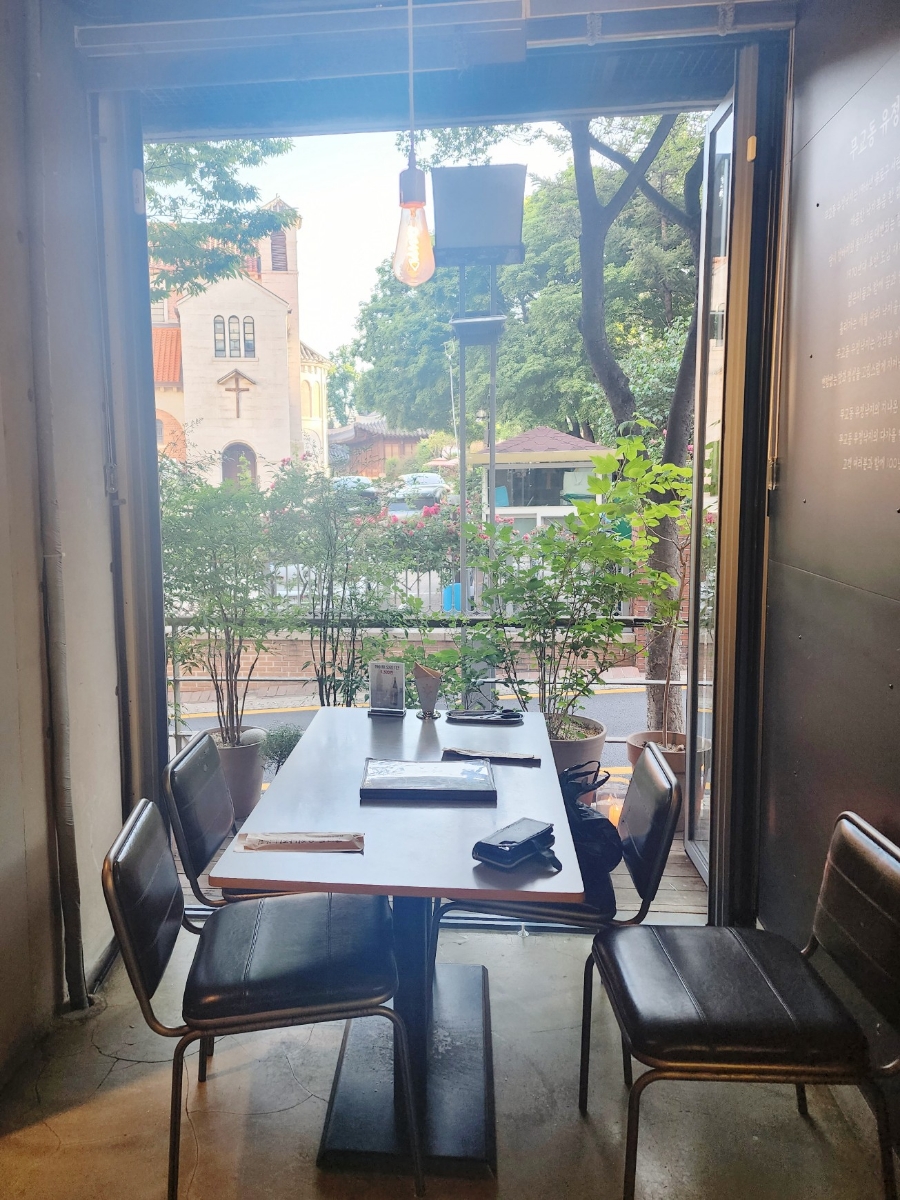창밖으로 보이는 고즈넉한 정동길과 연식이 보이는 대한성공회 성가수녀원 건물이 그냥 바라만 봐도 너무 운치 있고 좋았습니다.