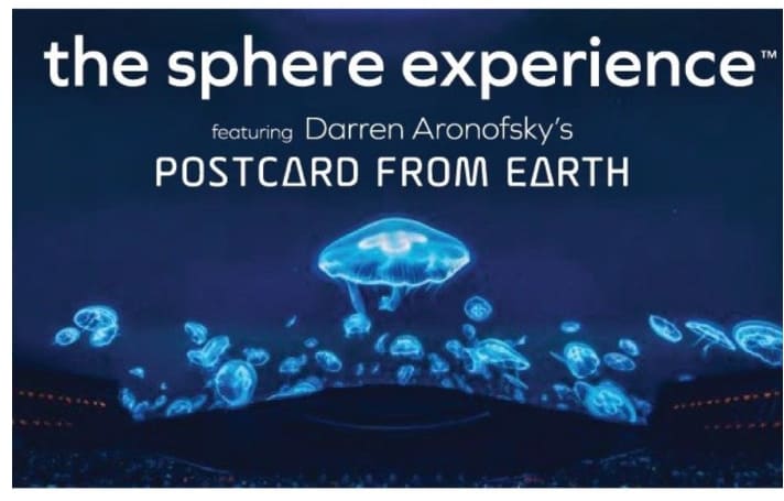 《Postcard from Earth》는 감독 대런 아로노프스키(Darren Aronofsky)가 연출한 몰입형 영상 프로젝트로, 라스베가스 스피어에서만 상영되는 독점 콘텐츠입니다.