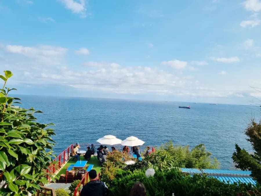 탁 트인 바다를 배경으로 따뜻한 커피 한 잔과 함께 여유를 만끽할 수 있습니다.