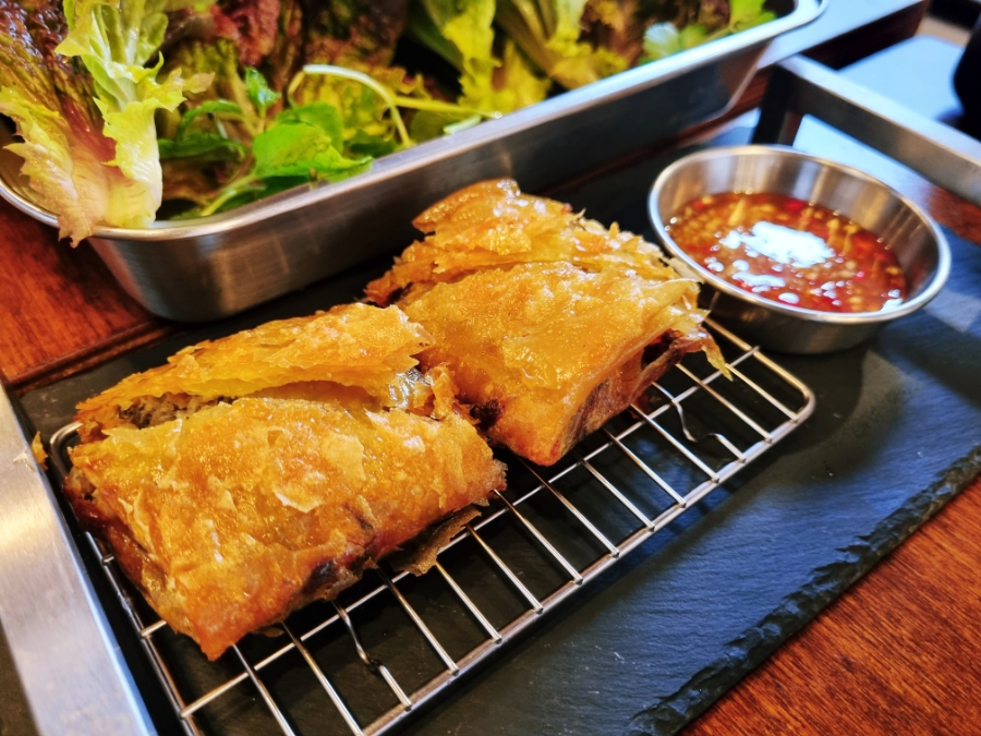 사이드 메뉴로 주문한 라이스페이퍼에 야채와 고개를 다져 넣고 튀겨낸 하노이식 춘권 넴입니다.