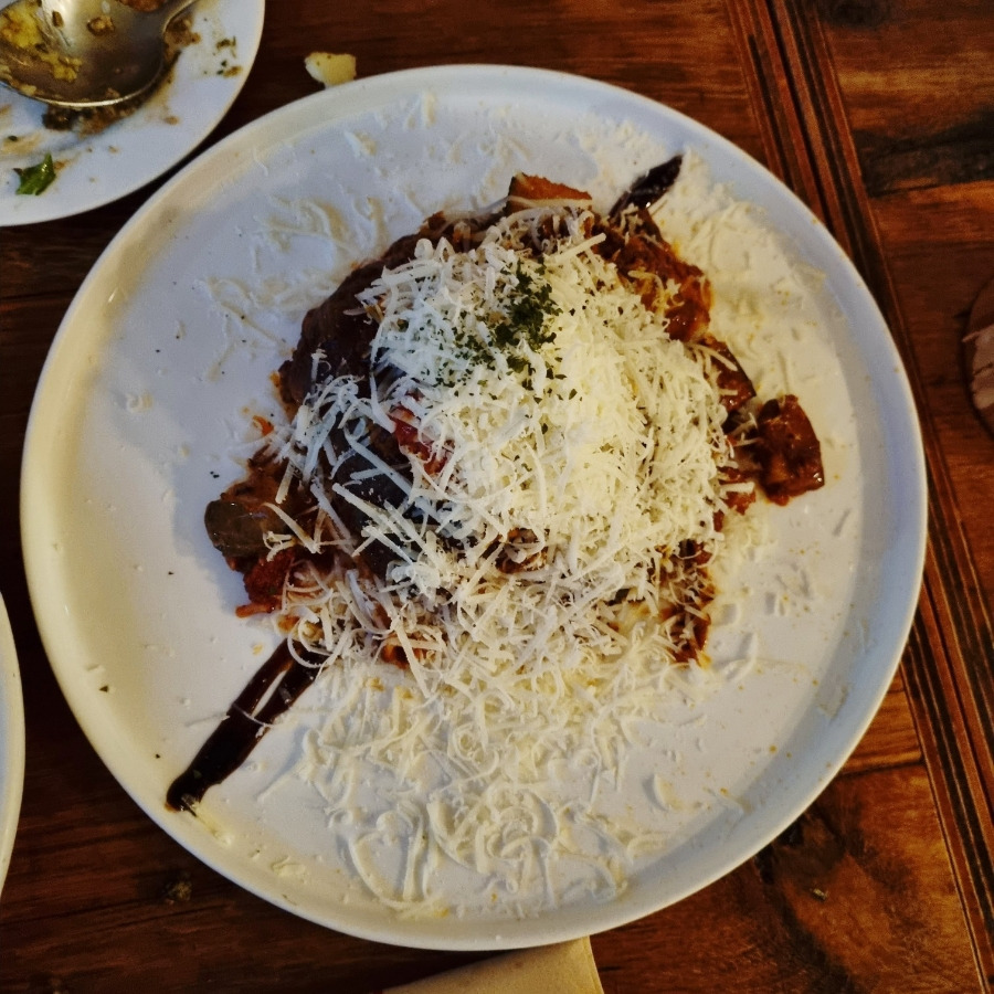 가지 라자냐는 밀가루 면 대신 얇게 썬 가지로 층을 쌓은 건데, 토마토소스와 치즈가 진하게 어우러져서 너무 맛있었어요.