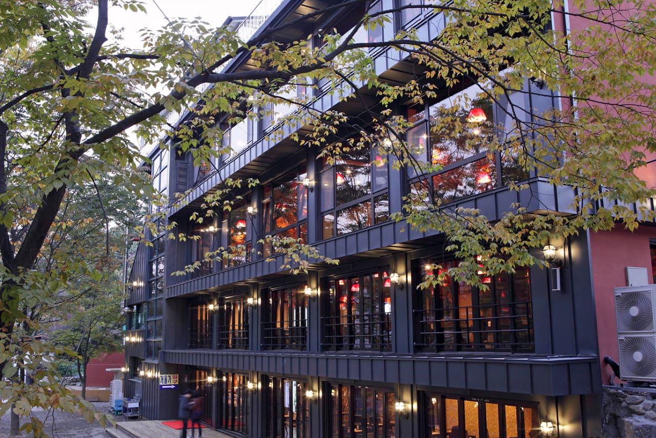 특징: 계곡을 따라 야외테이블이 놓여있는, 도심 속 별장 느낌을 주는 감성 식당입니다. 계곡으로 바로 이어지는 계단이 설치되어 있습니다.