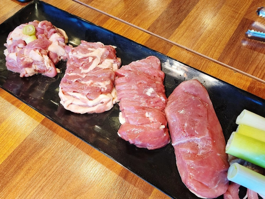 선홍빛 오리고기가 정말 신선해 보이고 침샘을 자극했어요.