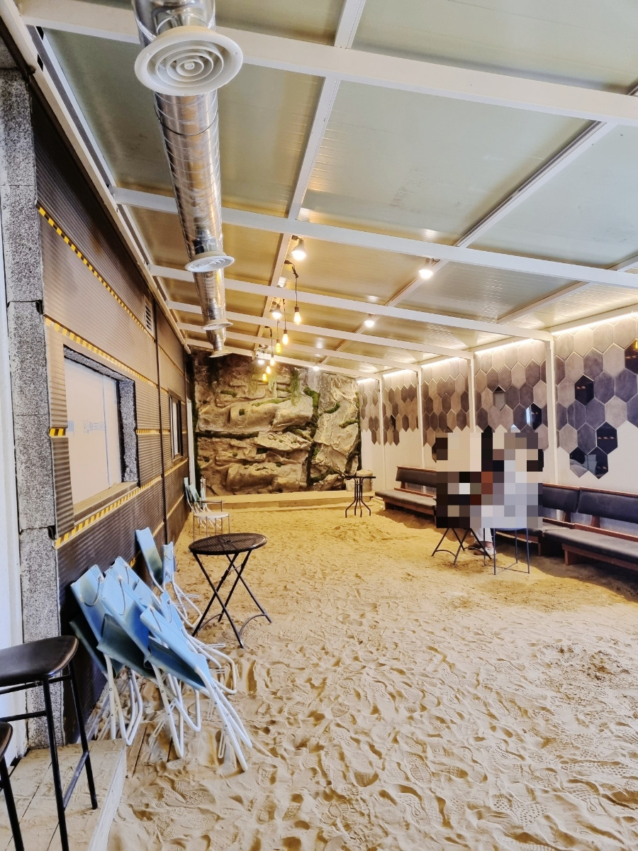 세 번째 공간이 이 카페의 가장 대표 공간인데, 대형 샌드뮤지엄이 있어요.