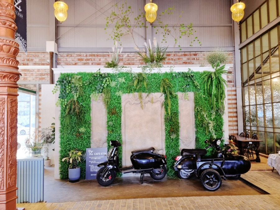 한쪽 벽면에는 근사한 포토존도 마련되어 있어요. 아이들 오토바이에 태워서 사진도 찍어주세요~ 아이들이 엄청 좋아할 것 같아요.