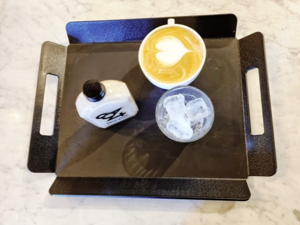 음료가 나왔는데 카페라테가 커다란 컵에 라테아트도 이쁘게 되어있고, 컵이 넘치도록 가득 넣어주네요.