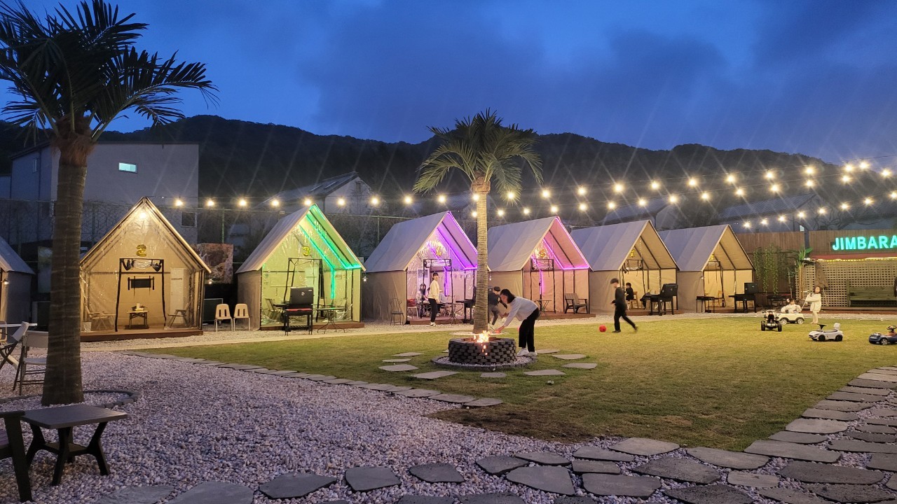 특징: 진짜 캠핑장 내 바베큐 공간, 예약 시 글램핑 텐트 이용 가능