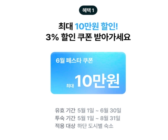 유럽 한인민박 6월 할인대전 - 6월 페스타 3%할인 쿠폰 최대 10만원