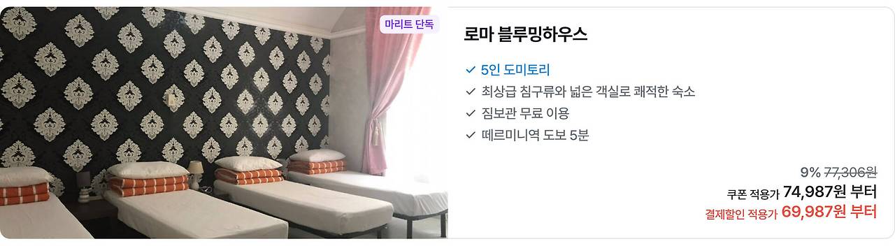 파리, 바르셀로나, 런던, 로마, 프라하 등 호텔 보다 저렴한 숙소 한인민박 최저가로 예약하세요!