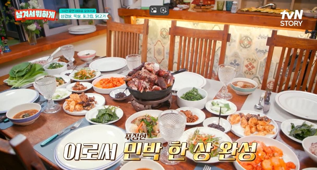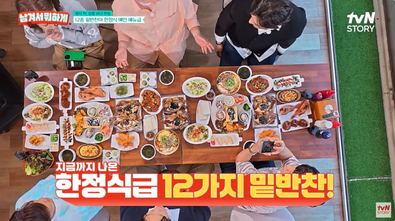한정식급 12가지 밑반찬이 제공되는데 남다른 퀄리티의 요리들로 출연진들의 감탄을 자아냅니다.