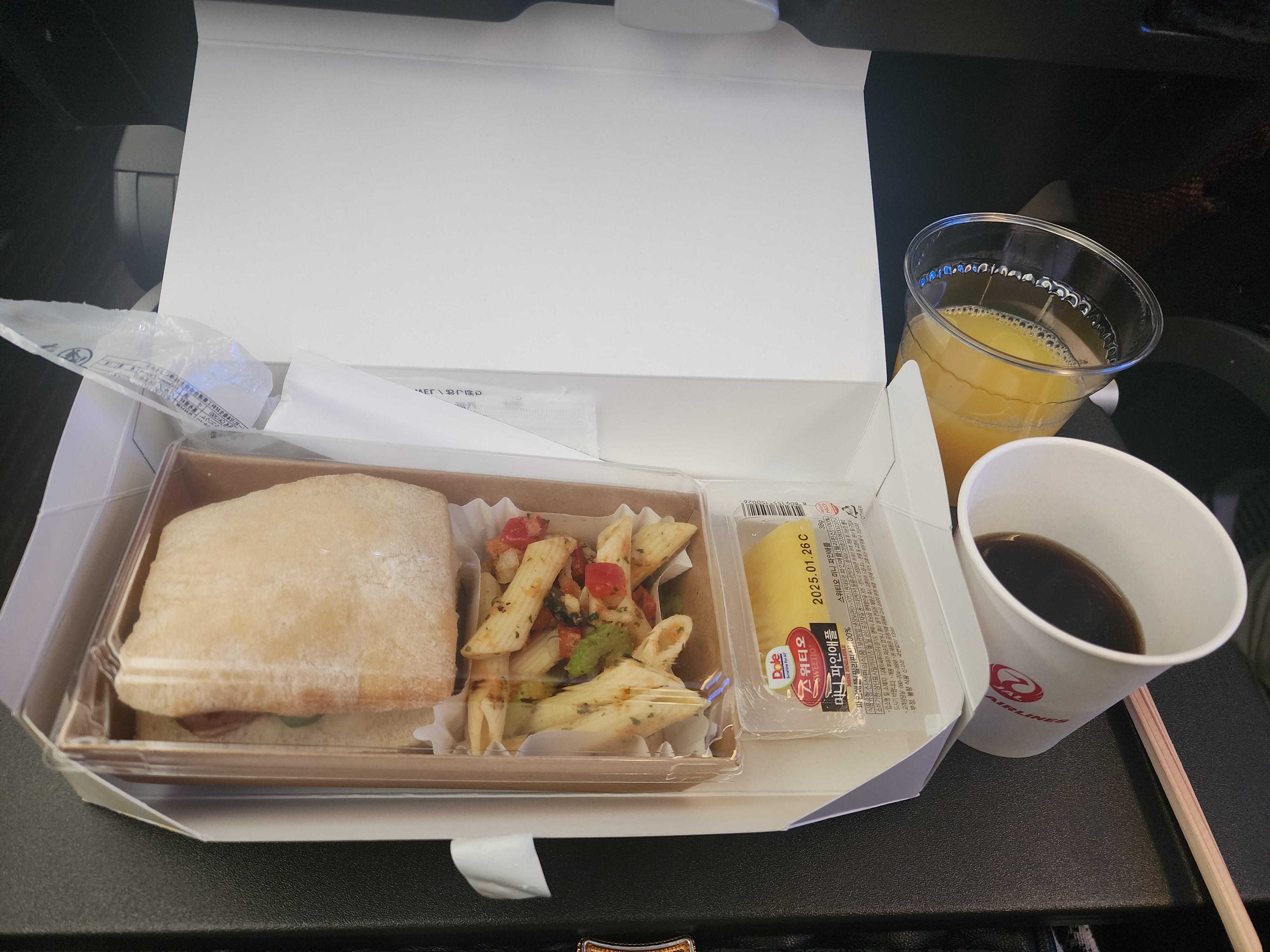 무겁지 않아서 아침 비행 시간대에도 부담 없이 먹을 수 있었고, 샌드위치 외에 제공된 과일과 요거트도 깔끔했습니다.