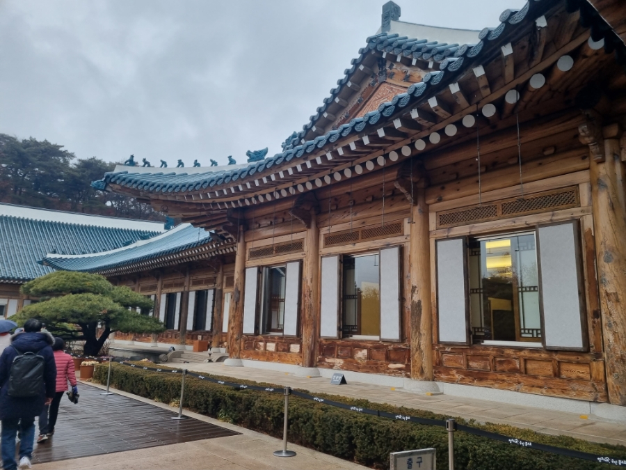 먼저 본관에 들어섰을 때, TV에서만 보던 그 공간을 실제로 보니 감회가 새로웠어요. 건물 외관의 푸른 기와와 하얀 벽이 정말 조화를 이루고 있었어요. 내부는 아쉽게도 출입이 제한되어 있어서 외부만 볼 수 있었지만, 충분히 웅장한 분위기를 느낄 수 있었답니다.
