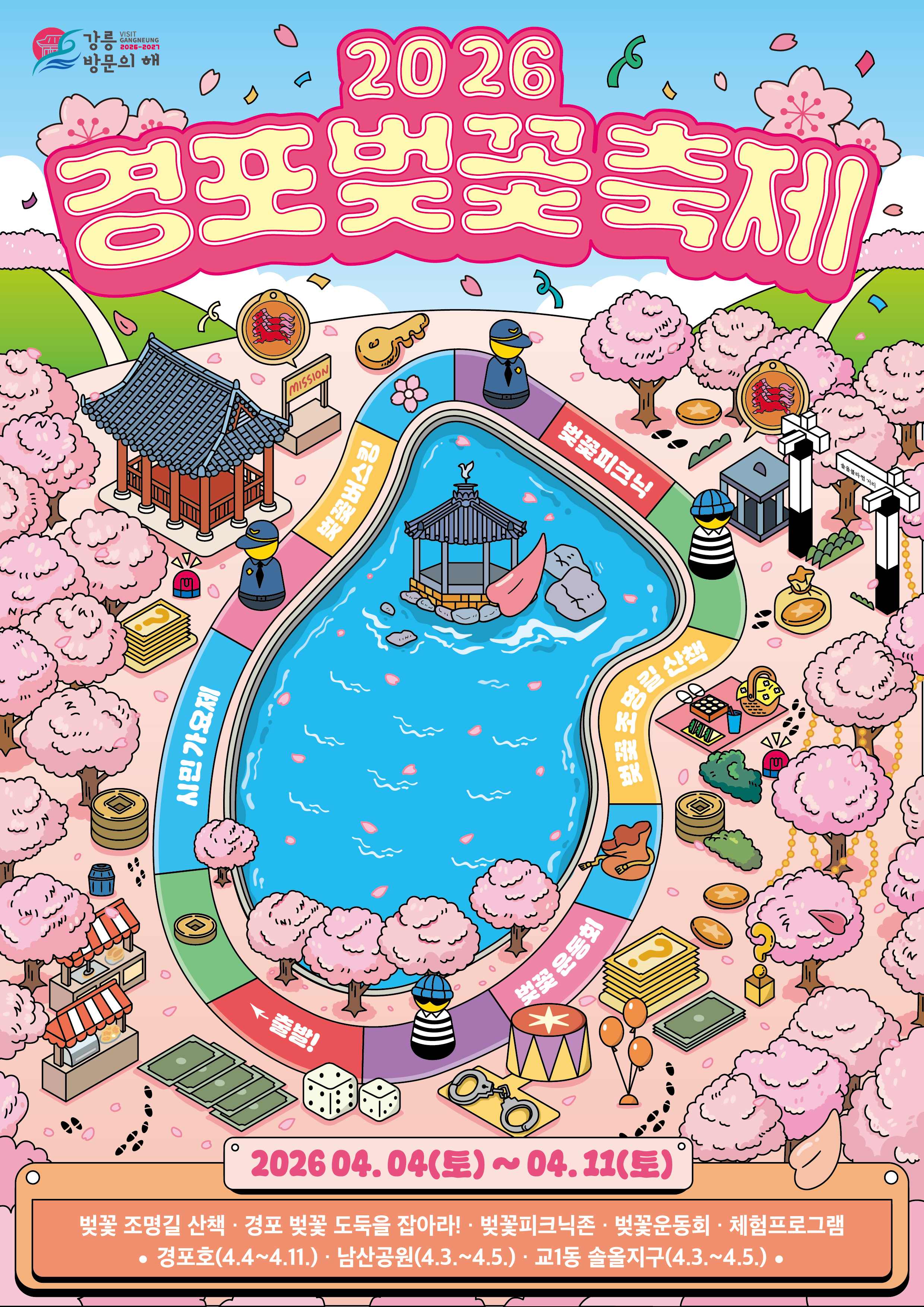 2026년에도 강릉은 경포호부터 남산까지 도시 전체가 벚꽃으로 물들 예정이에요.